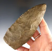 Clermont County Cache! Large 6 3/4" Cache Blade made from patinated tan and gray chert. |