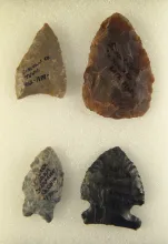 Set of four assorted arrowheads from the Greg Shipley collection, largest is 1 3/4". Ex. Weidner |