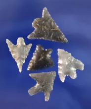 Set of five Obsidian arrowheads found in the Great Basin region, largest is 1 inch |