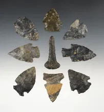 Set of 9 nice Coshocton points found in Stark & Tuscarawas Co., Ohio. The largest is 2". OHIO 95.00