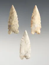 Set of 3 well made Ohio Hopewell points. The largest is 2 9/16". | OHIO | 110.00 | |