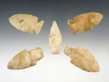 Set of 5 nicely made points found in Stark Co., Ohio. The largest is 2 3/8". OHIO 50.00