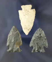 Set of 3 Assorted Ohio Arrowheads, largest is 1 3/4". |