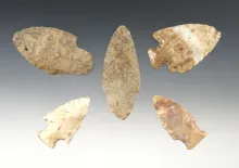 Pair of nicely styled Castroville points found in Central Texas. Largest is 2 5/16". |