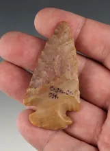 2 1/4" Flint Ridge Hopewell found in Geauga Co., Ohio. Nice form. Ex. Terry Reed collection. |