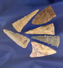 Set of six nice Triangle points found in the Midwest, largest is 1 7/8". |
