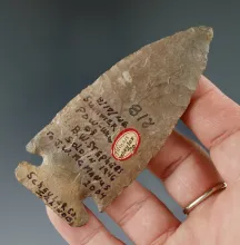 Excellent flaking in style on this well patinated 3 3/8" Sidenotch found in Schuyler County Illinois