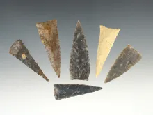 Set of 6 well made Triangle points found in the Indiana/Kentucky area. The largest is 2". | KENTUCKY | 190.00 | |