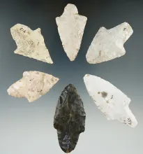Group of seven assorted Missouri arrowheads, largest is 2 5/16". | MISSOURI | 30.00 |