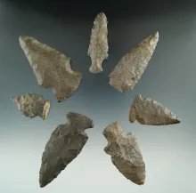 Group of seven assorted points and knives found in New York, largest is 3". | NEW YORK | 75.00 | |