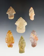 Set of 6 assorted colorful Ohio points. The largest is 1 15/16". |