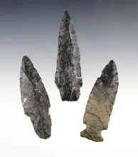 Set of 3 nice Ohio points including 2 Stemmed pieces and 1 Fishspear. The largest is 3 3/16". |