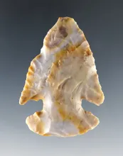 1 3/4" highly colorful Pinetree made from Sonora Flint. Nice serrations and flaking. Ohio. |
