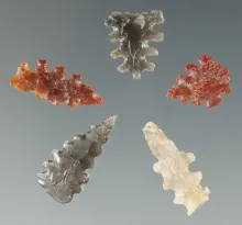 Set of 5 Calapooya Fern Leaf Points found at Fern Ridge, near Eugene, Oregon. Longest is 3/4". |