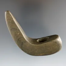 3" Archaic Geniculate made from green and black Banded Slate, found in Sandusky Co., Ohio. |