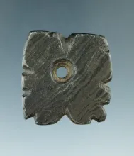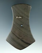 4 1/2" Hopewell Two Hole Pendant made from green and black Banded Slate, found in Ohio. Ex. Al Wakef