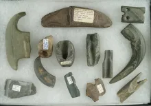 Set of 9 damaged or unfinished slate artifacts found in north central Ohio. Largest is 3 1/2". |