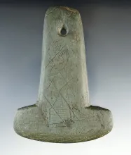4 1/4" Adena Bell Pendant with restoration to one corner. Medina Co., Ohio. Ex. Williamson Collectio |