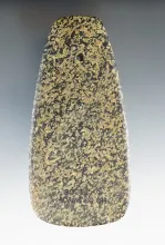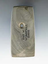 3 5/16" Adena Ovate Pendant made from green and black Banded Slate. Adams Co., Ohio. |