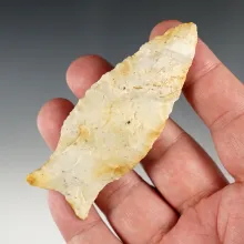 Nicely beveled 4 1/16" Dovetail found in Pike Co., Illinois. Excellent style and form. |