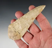 3 1/2" Archaic beveled Thebes point found in Calhoun Co., Illinois. |