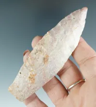 Very large 8 3/16" Mill Creek Chert Lanceolate Blade found in Illinois. | ILLINOIS | 400.00 | |