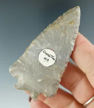 Uniquely styled base on this well flaked clip-wing style 2 13/16" Decatur Point made Hornstone. | INDIANA | 225.00 | |