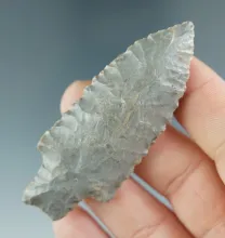 Excellent flaking and style on this 2 13/16" steeply beveled Archaic Thebes found in Indiana. | INDIANA | 90.00 | |