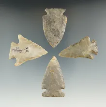 Set of four nice Cornernotch arrowheads found in Kentucky, largest is 1 7/8". Ex. Henry English. |