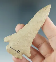2 1/4" nicely serrated Pine Tree point found in Garrand County Kentucky. Ex. Henry English. |