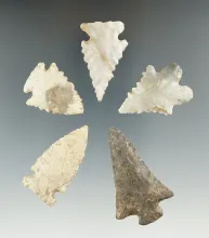 Set of five nicely styled Kentucky arrowheads, in good condition. Largest is 2". Ex. Henry English. |