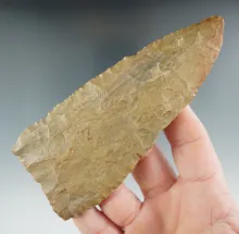 4 3/4" Archaic Beveled Cobbs Knife with great patina. Found in Hardin Co., Kentucky. |