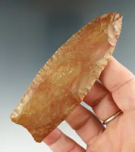 3 15/16" Paleo Fluted Clovis found in Marion Co., Kentucky, made from beautiful Buffalo River. |
