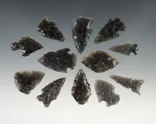 Set of 12 Obsidian points found in New Mexico. The largest is 1 7/16". |