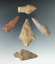 Set of five assorted New York arrowheads, largest is 2 3/8". | NEW YORK | ||
