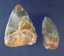 Pair of highly colorful woodland points - Huron and Crawford Co.Ohio. Largest is 2 1/4". |