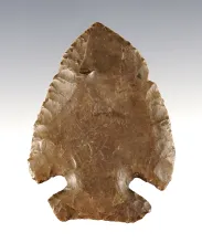 3 1/8" heavily serrated Pinetree found in the Ohio/Kentucky area. Excellent basal grinding. |