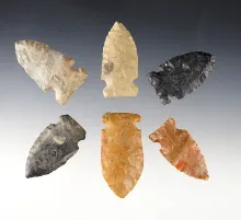 Set of 6 Ohio Sidenotch points in very good condition. The largest is 2 1/16". |
