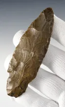 Nice 3 9/16" Paleo Square Knife made from patinated Flint Ridge Flint. Knox Co., Ohio. |