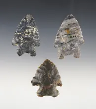 Set of 3 classic Ohio Bifurcated MacCorkle points. The largest is 2 5/16" |