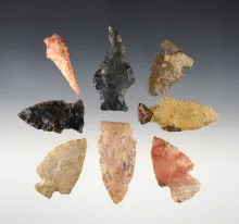 Set of 8 nicely made points, most are from Ohio. The largest is 2 5/8". |