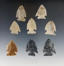 Set of 7 nicely colored Flint Ridge points found in various Ohio counties. Largest is 1 3/4". |