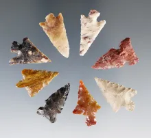 Set of 8 Assorted Columbia River Arrowheads, largest is 13/16". |
