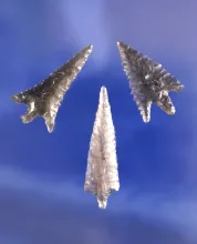 Set of three very nice Obsidian arrowheads found in Oregon, largest is 1 1/8". |