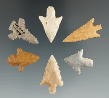Group of seven assorted arrow points found in Angelina Co.,Texas. |