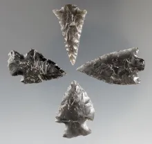 Set of 4 Assorted points found by Norma Berg near the Columbia River, WA. Bennett COA. |