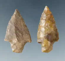Pair of 1 1/4" points including a Merrybell and a Rabbit Island found at the Ohbe site in Washington |