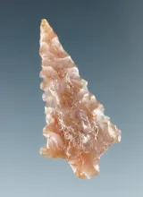 Excellent serrations on this 11/16" Calipooya made from attractive pink and white flint - Oregon. |