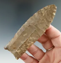 Thin and incredibly well flaked 4 3/8" heavily patinated Buck Creek found in Kentucky. |