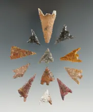 Group of 12 assorted Oregon arrowheads, largest is 1 1/2". Ex. Jim Hogue collection. |